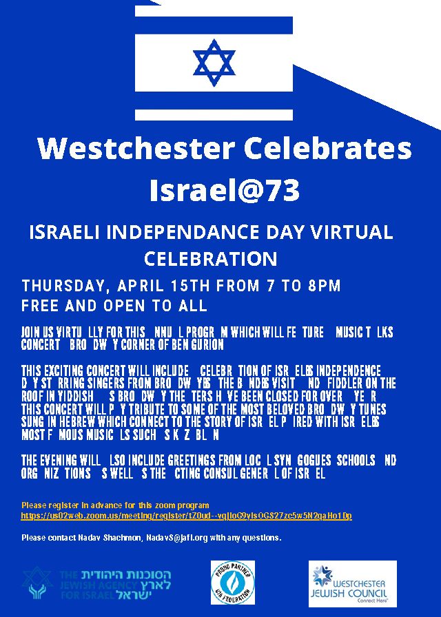 April 15, 2021 @ 7:00 pm – 8:00 pm – Please register in advance for this program https://us02web.zoom.us/meeting/register/tZ0ud–vqjIoG9yIsOGS27zc5w5N2qaHo1Dp After registering, you will receive a confirmation email containing information about joining the meeting. Please check your spam folder if you do not see it. For more information please contact Helene@wjcouncil.org