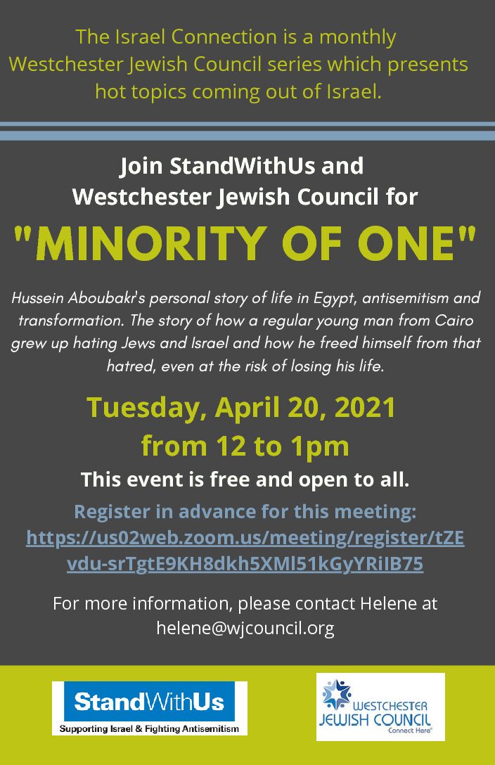April 20, 2021 @ 12:00 pm – 1:00 pm – Please register in advance for this meeting: https://us02web.zoom.us/meeting/register/tZEvdu-srTgtE9KH8dkh5XMl51kGyYRiIB75 After registering, you will receive a confirmation email containing information about joining the meeting. For more information please contact helene@wjcouncil.org