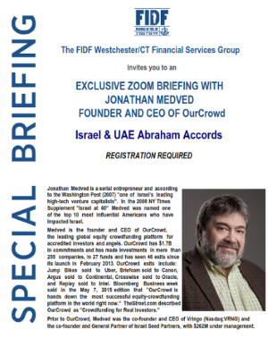 May 6, 2021 @ 1:00 pm – 2:00 pm – Join Friends of the IDF’s Financial Services group for an exclusive Zoom briefing with Jon Medved, founder and CEO or OurCrowd. Jon will be discussing Israel & the Abraham Accords.