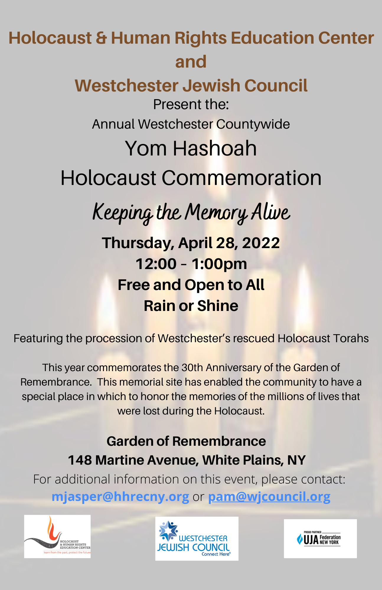 April 28, 2022 @ 12:00 pm – 1:00 pm – https://www.wjcouncil.org/what-we-do/holocaust-remembrance-yom-hashoah/