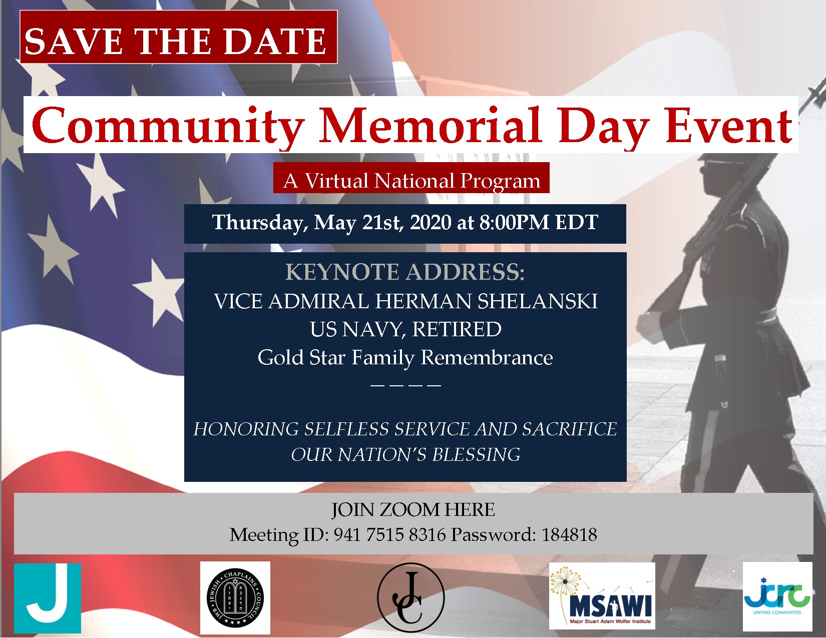 May 21, 2020 @ 11:30 am – 12:00 pm – For zoom information please contact Pam@wjcouncil.org