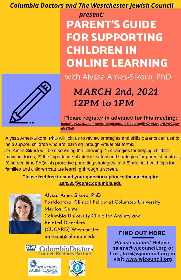 February 28, 2021 @ 3:00 pm – 4:00 pm – Westchester Jewish Center Virtual Dance Party https://www.wjcenter.org/events/wjc-virtual-dance-party-2021-02-28/ February 28, 2021, 3:00 pm – 4:00 pm tarting December 20, you can join us every Sunday afternoon from 3:00 to 4:00pm for a dance party in the comfort of your own home. Each week, we’ll have a guest DJ who will play all the songs you know and […]