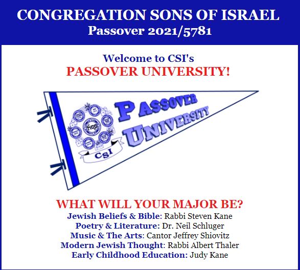 March 18, 2021 @ 7:30 pm – 9:00 pm – THE FOUR CHILDREN AS DEPICTED IN MODERN HAGGADOT Thursday, 3/18 @ 7:30PM Instructor: Rabbi Albert Thaler. This class will examine how the four sons (children) have been depicted and illustrated in Haggadot since the age of printing (1500). We will analyze how each son (child) was drawn, representing the values of the artist. “Who is […]